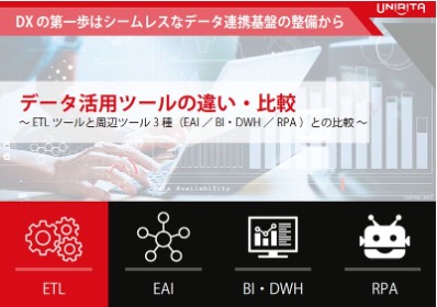ETL ツールと周辺ツール3種(EAI / BI・DWH / RPA )との比較表およびツールごとの解説をまとめたホワイトペーパーをダウンロードしていただけます。